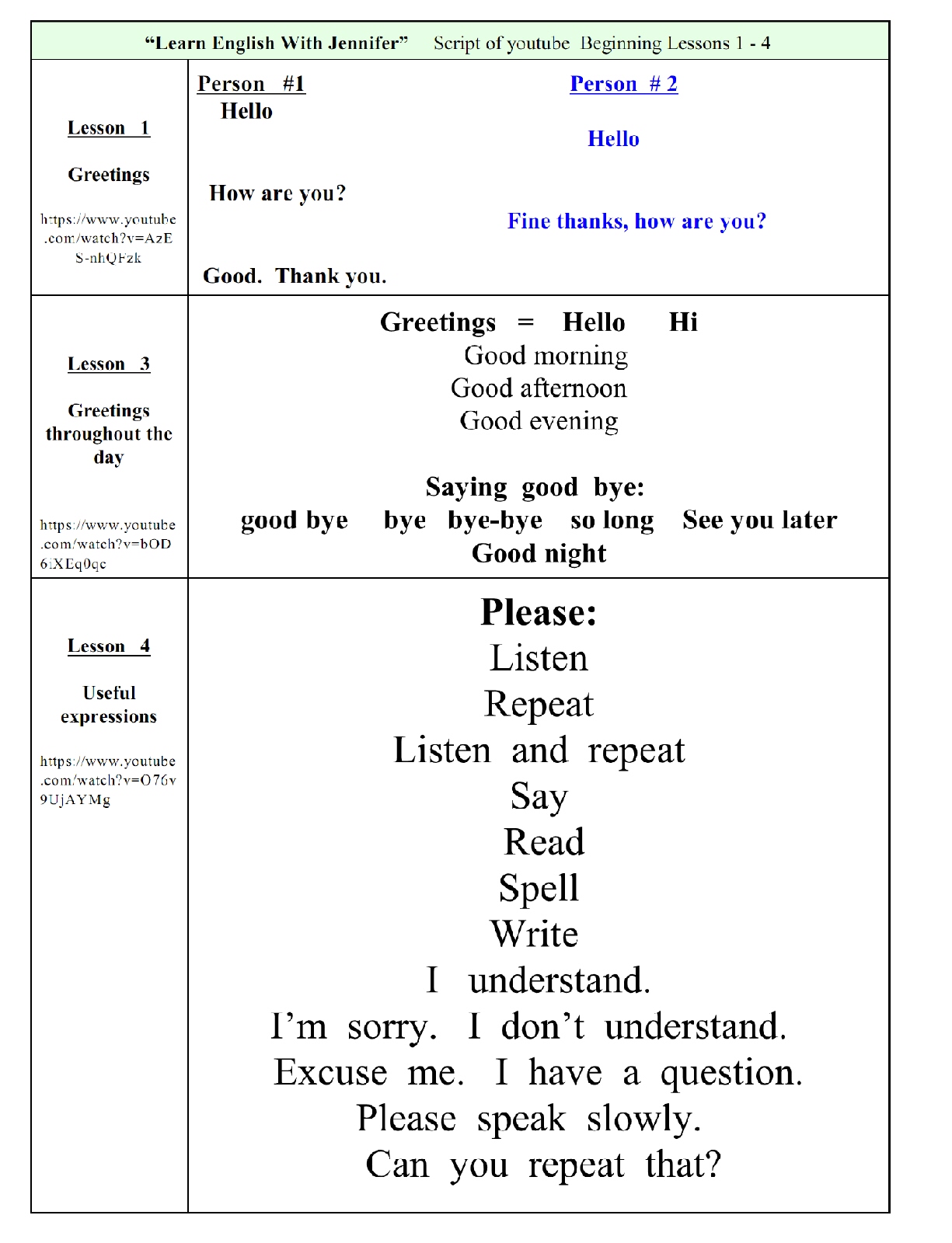 Lesson 1: Greetings
