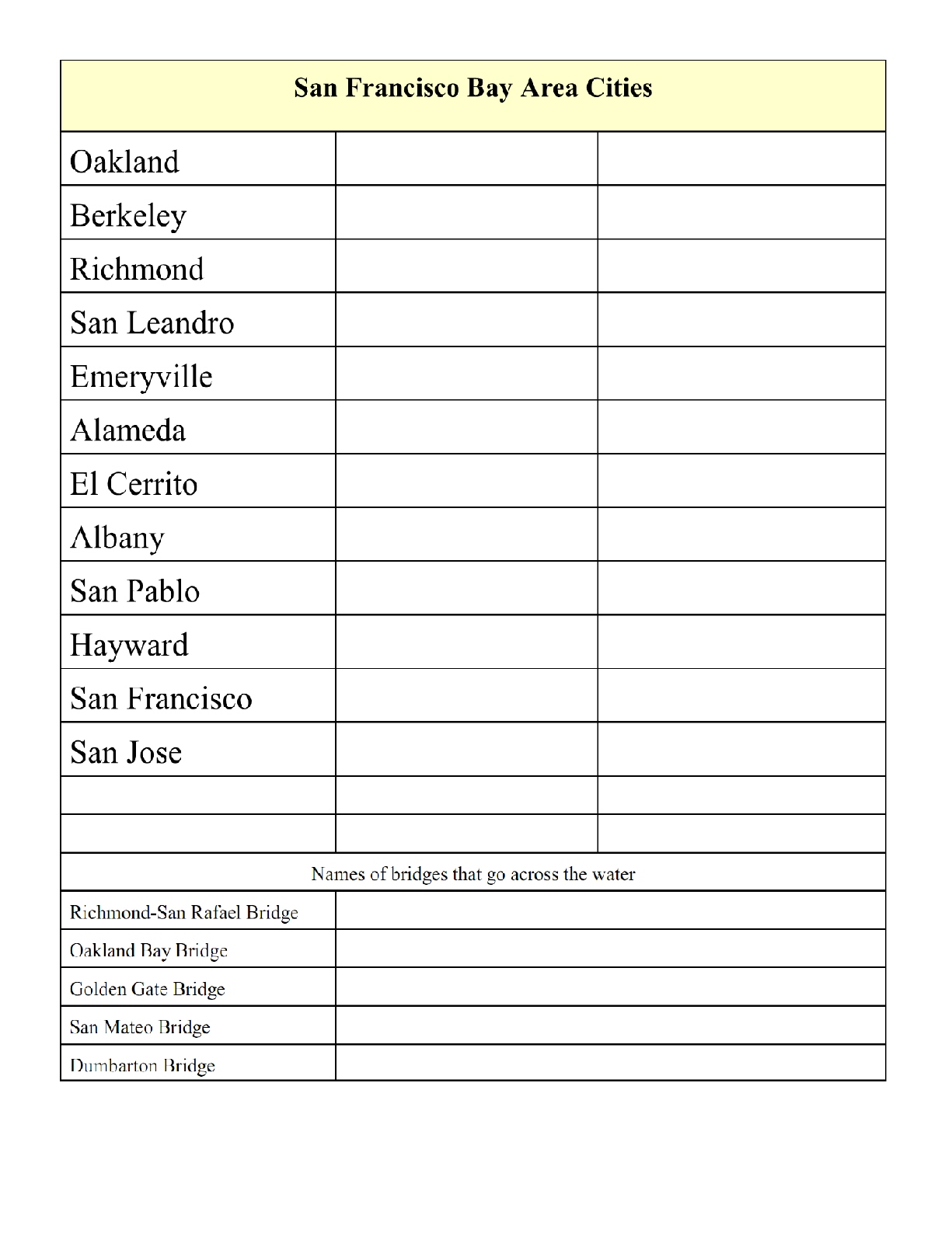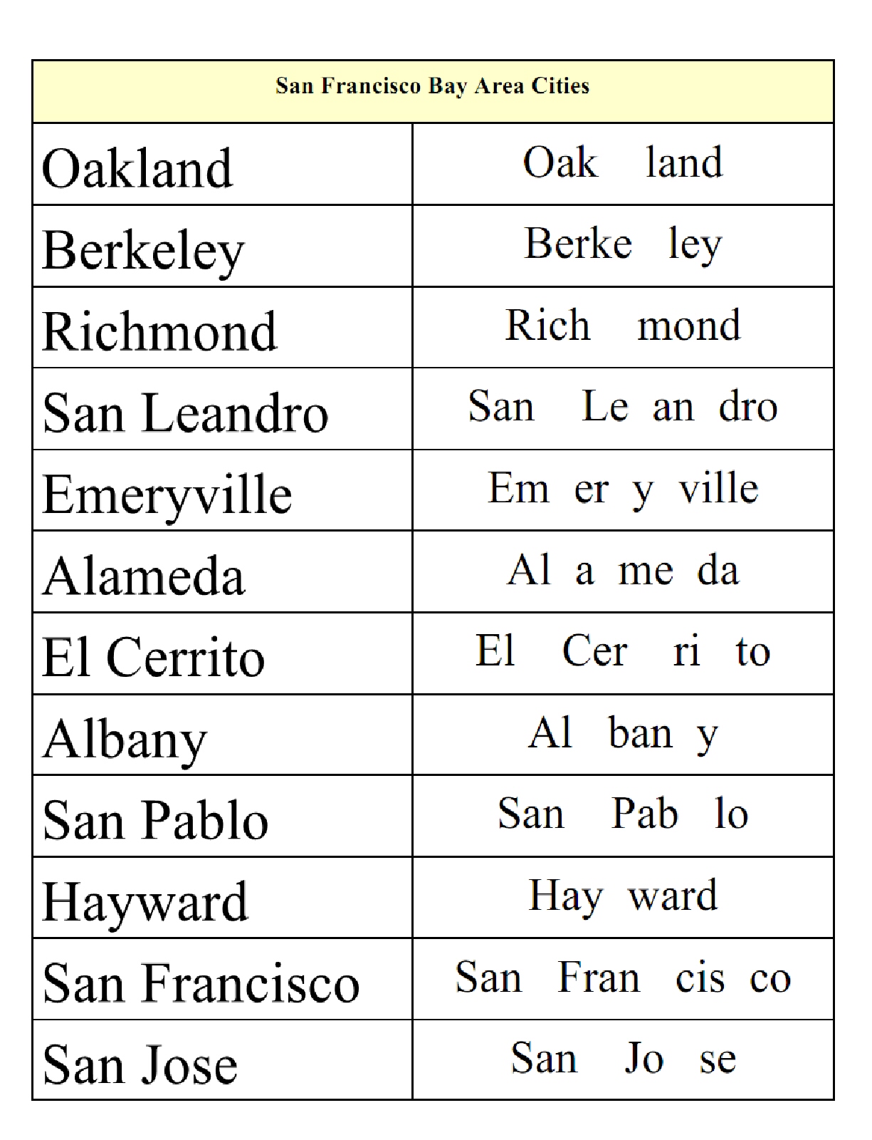 Link: Printable pdf copy of San Francisco Bay Area city names