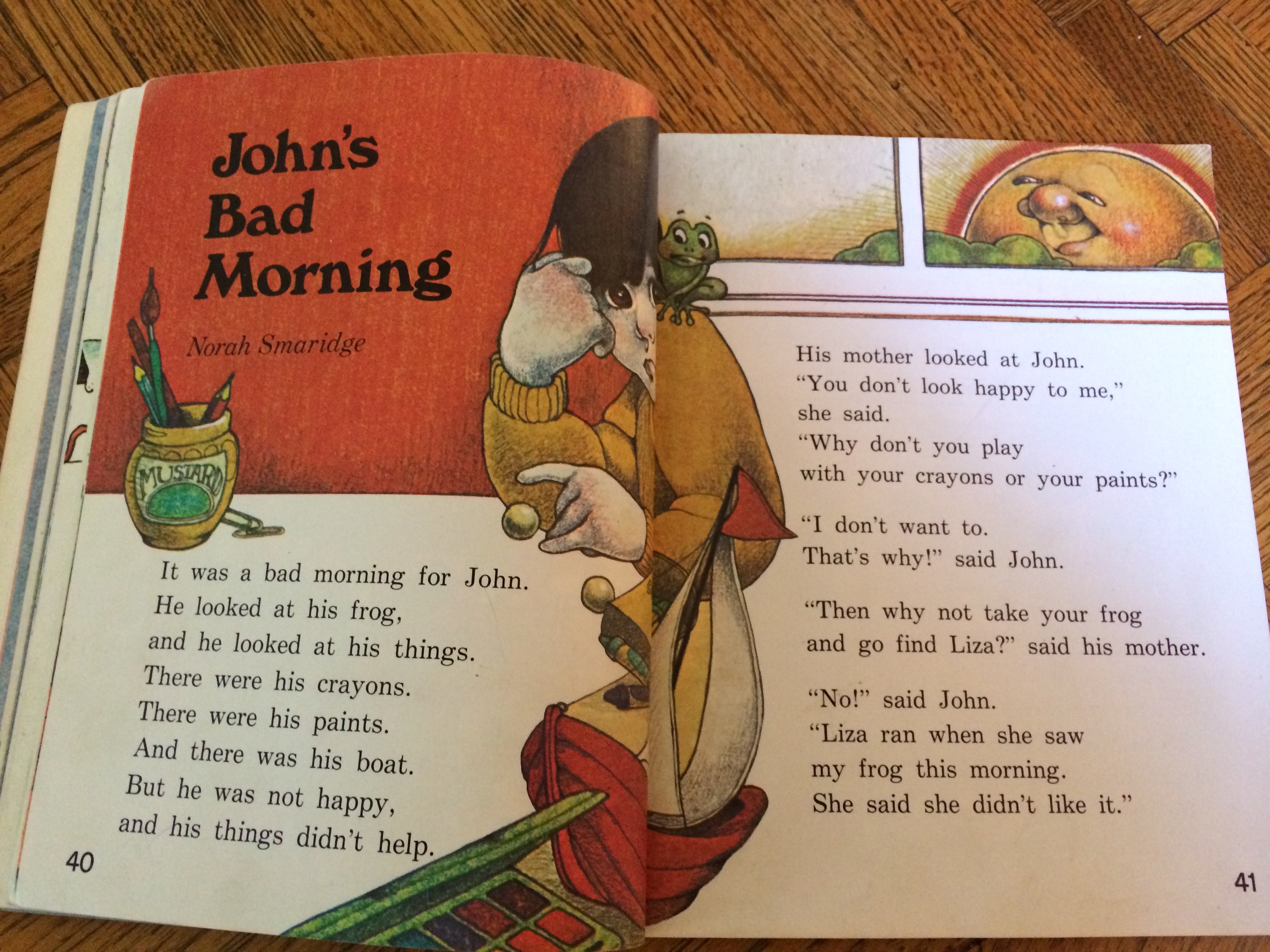 “You can’t come in,” said John. “My frog is in here with me. And you don’t like it.”