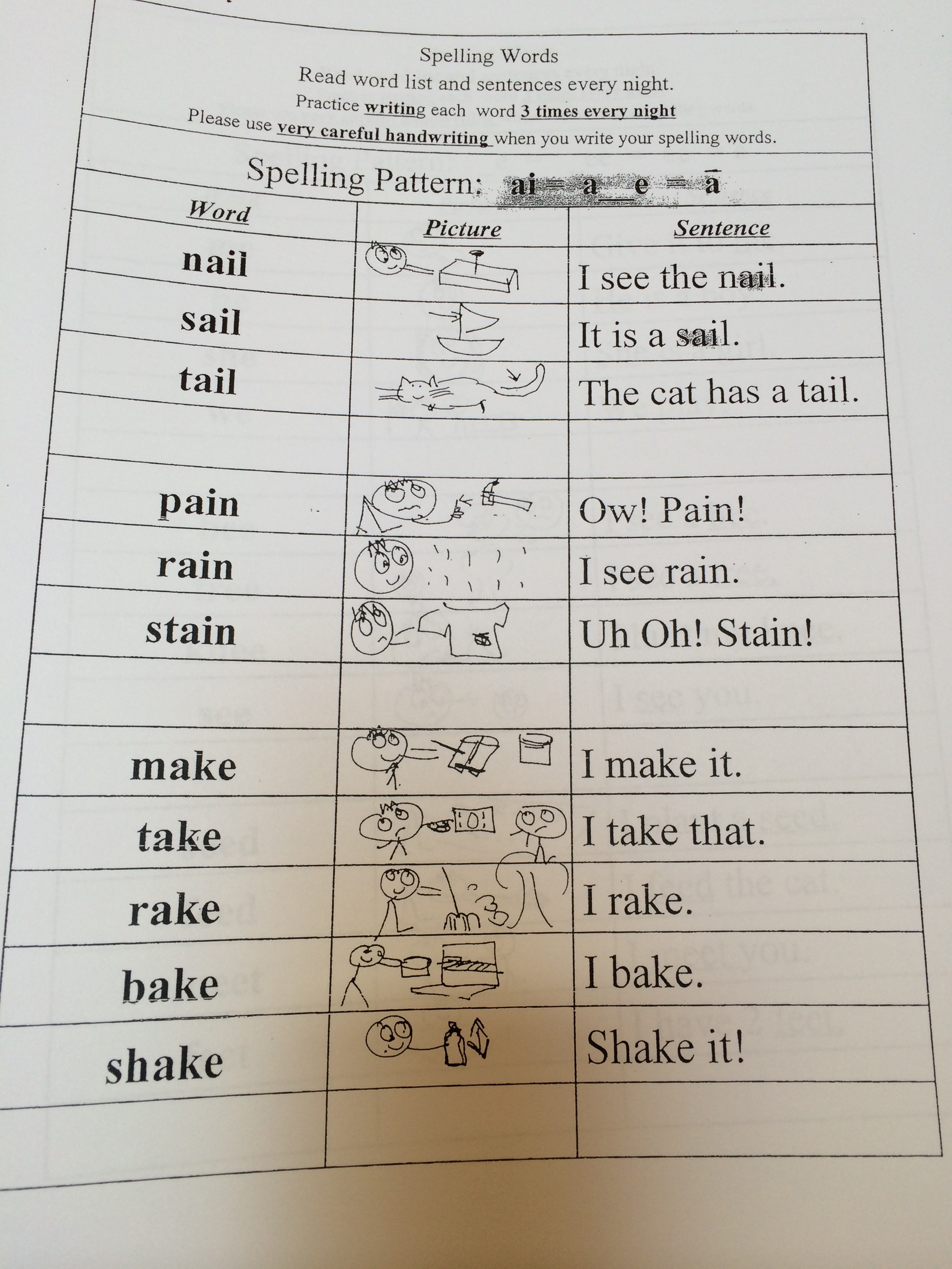 read the long a words : __ai__ _a_e